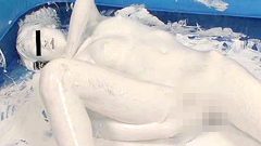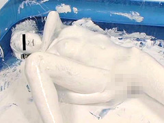 オープニングから彼女の緊張した表情がたまらない。白いTシャツにショートパンツというシンプルな私服姿でプールサイドに立つと、すでにドキドキが伝わってきます。「え、こんなに埋まるの? 取れなくなったらどうしよう…」と不安げに呟きながら、恐る恐る一歩踏み込む瞬間が最高の羞恥ポイント。足首まで沈んだ途端、ビーズがザクザクと音を立てて絡みつき、彼女の細い脚に白い粒々がまとわりつきます。進むごとに膝、太もも、お尻とビーズの高さが上がり、体重で沈み込むたびに周囲のビーズが跳ね返って飛び散り、服の上からでもその汚れ具合が視覚的にエロいんです。