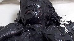 クライマックスは髪と顔のトータルコーティング。全身がすでにグリースのスーツを着たような状態で、髪にドバドバかける。黒髪が重く垂れ下がり、グリースが顔面に流れ落ちる。彼女は「顔はダメぇ!」と抵抗するけど、無情にも目元、鼻、口周りまでベットリ。まつ毛に絡まり、唇がテカテカ光る姿は究極のメッシー美人。目を開けられず悶え、舌でグリースを舐め取ろうとする仕草がエロすぎ。顔全体が黒い仮面のように覆われ、息遣いが荒く「全部覆われちゃった…興奮しちゃう」と自白。ヌキどころその3:顔出しの完全コーティングで、彼女の表情がグリース越しに歪む羞恥と恍惚のミックス。