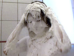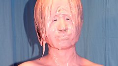 第2部へ移り、2人目のぽっちゃり素人女性(少しお姉さん風)が登場。いきなり顔面をマシュマロクリームのバケツにズブリ! クリームが鼻と口を塞ぎ、「むぐっ!息できないよぉ!」と慌てて引き抜くが、顔全体が白くコーティングされ、目元や唇周りがべっとり。髪の毛までクリームまみれで、梳かすたびに糸引きがエロく、頰を伝う滴が首筋へ流れ落ちる。彼女のリアクションはパニック気味の羞恥MAXで、「顔が重い…取れない!」と手を叩きつけながら笑い転げ、興奮で頰が上気。そこから体へ広げ、Tシャツをめくり上げてお腹に直塗り。クリームの重さで布地がずり下がり、脇腹の肉が透けてプニプニ揺れる。ヌキどころは顔面ダイブ後の首筋舐めシーン。彼女が自分の指でクリームをすくい、舌でペロリと味わう姿が超フェチ。甘い味に「甘くておいしい…でもエッチぃ」と喘ぎ、股間を擦り始める。透けのエロさは胸元で炸裂、クリームが染み込んだTシャツが乳房を包み、乳首の周りに白い輪っかが浮かぶ。汚れ具合は顔→首→胸のグラデーションが美しく、べっとり感が指先から伝わってくるよう。