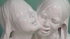 絵の具を全身にかけ終えたところで、スタッフの指示で上着をゆっくり脱がされていく。白く汚れたTシャツが肌から剥がれる瞬間、透け透けのブラジャーが露わに! すでに乳首の形がくっきり浮き出て、ピンク色の先端が白絵の具のベタベタでテカテカ光ってる。パンツもびっしょり濡れて股間部分が白く染まり、クロッチにへばりついた布地がクンニされた後のように卑猥に張り付き、わずかに透けて陰毛の影まで確認できちゃうほどの汚れ具合。ヌルヌルの白絵の具が滴り落ちる音が響く中、下着姿でポーズを取らされ、恥じらいながらも「気持ちいいかも…」と小さな声で呟く彼女の羞恥心が最高にそそる。完全に裸にされた後、全身にくまなく白絵の具を塗り込まれていくシーンはまさにWAMの醍醐味。スタッフの手が胸を揉みしだくように塗り広げ、乳輪まで白くコーティングされ、乳首を指先で弾かれるたびビクンと反応。腹部から太もも、お尻の割れ目までローション混入のヌルヌル白絵の具が滑らかに塗られ、全身が均一な真っ白けのマネキン状態に! 肌の本来の色が一切見えず、ただの白い肉塊と化したエロさが異常。指を滑らせるとキュチュッと音を立てるほどのヌル度で、汚れのエロさが半端ない。
